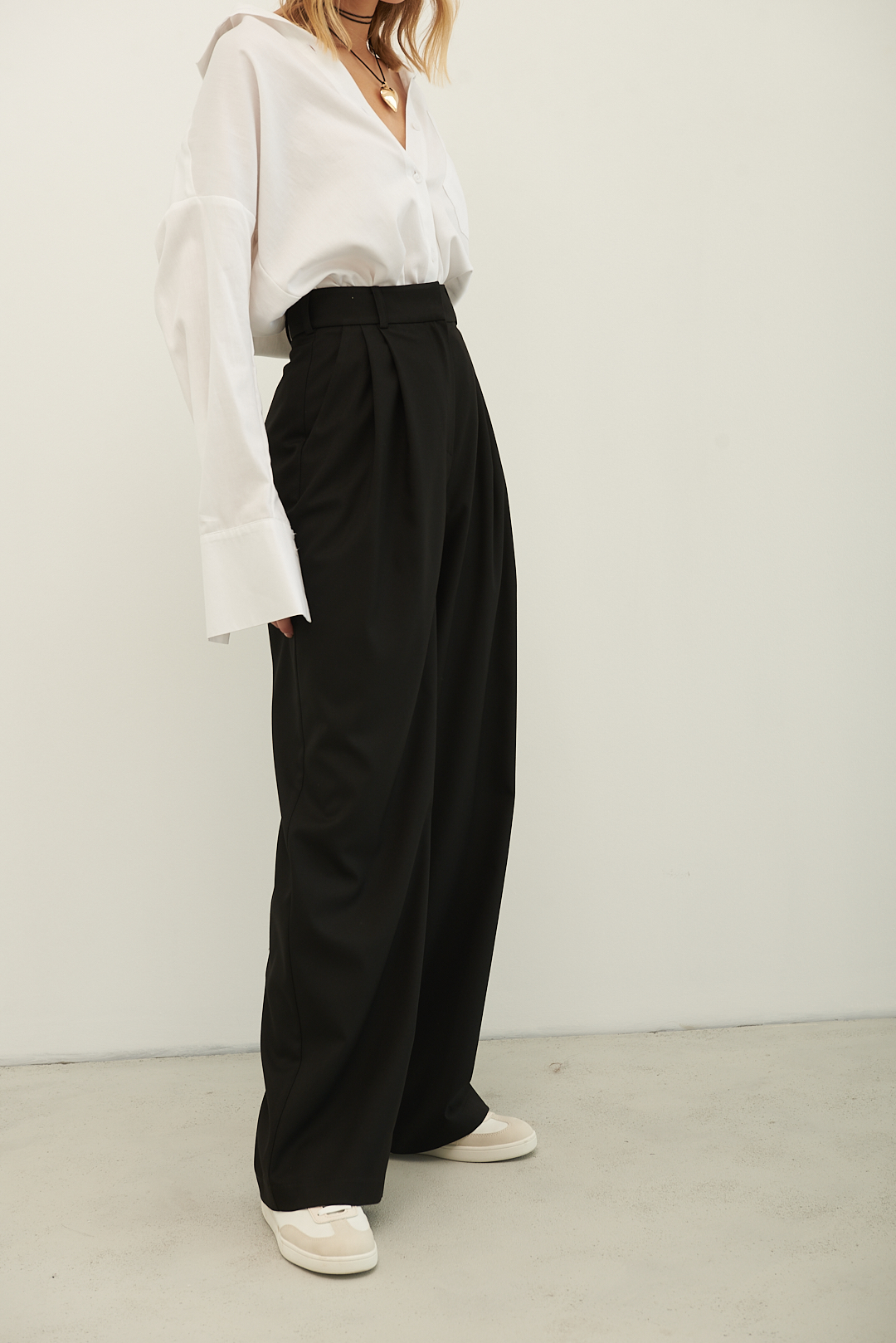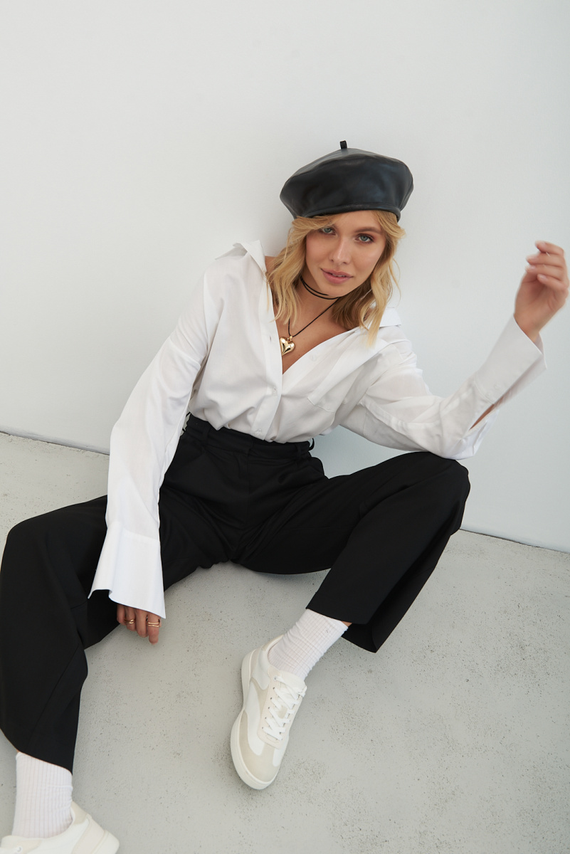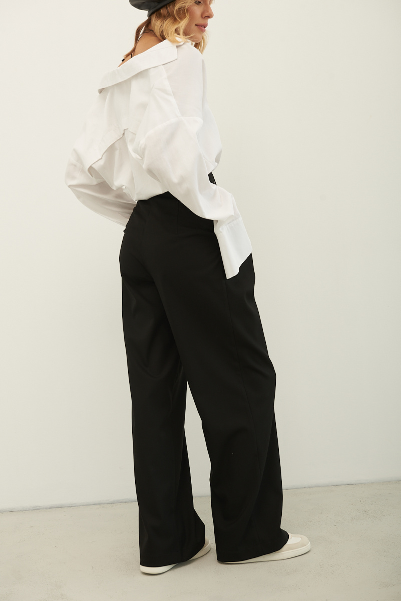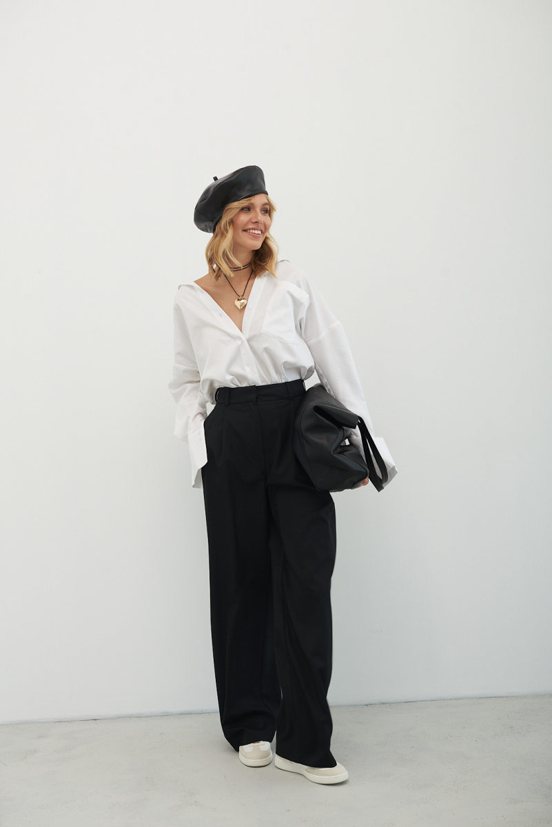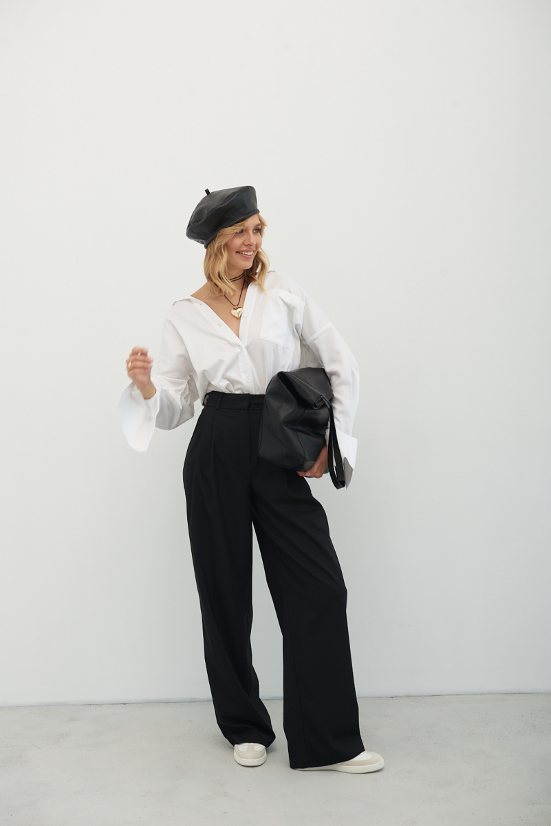 Брюки CRUISE покроя палаццо выполнены из мягкой костюмной поливискозы. Защипы у талии, высокая посадка. Вытачки на задней половинке обеспечивают идеальную посадку. Брюки представлены в цветах: черные, серые, графитовые, шоколадные, молочные, сливочные.